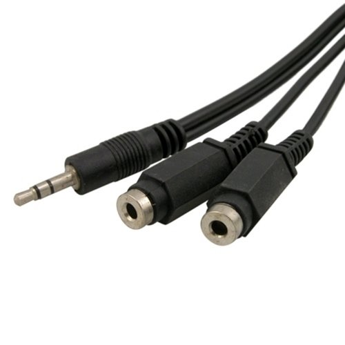 - Input: 1 male 3.5mm stereo plug.Output: 2 female 3.5mm stereo plugs. Excellent sound reproduction and signal to noise ratio.Length: 6 ft/1.8 m.Color: Black.