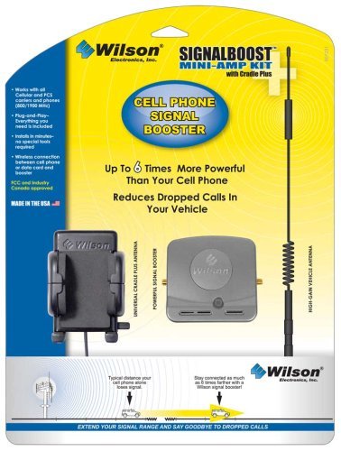 Features *Installs in minutes - no special tools required * Portable - can easily be moved between vehicles * Wireless operation - no physical connection to cell phone or data card * Supports multiple users in vehicle * Amplifies signals to and from the cell site on both 800MHz and 1900MHz frequencies * Microprocessor-controlled circuitry ensures reliable operation within regulatory standards * Build-in antenna in the phone cradle permits hands-free operation * Improves signals for both voice and data * Includes our high efficiency 12 inches exterior magnet mount antenna * Six times more power than a typical cell phone * DC power supply included (cigarette lighter type), AC power supply sold separately * FCC and IC Type Accepted Part Number 801231 Frequency 824-894 MHz / 1850-1990 MHz Gain 40 dB / 45 dB Max Output Power 1.5 watts